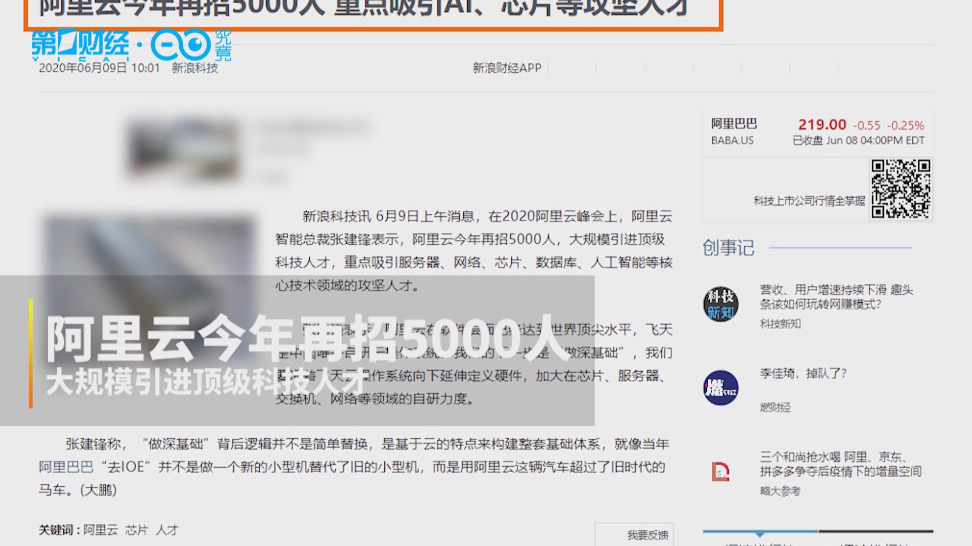 今天(6月9日),在2020阿里云峰会上,阿里云智能总裁张建锋表示,阿里云今年再招5000人,大规模引进顶级科技人才,重点吸引服务器、网络、芯片、数据库、人工智能等核心技术领域的攻坚人才。