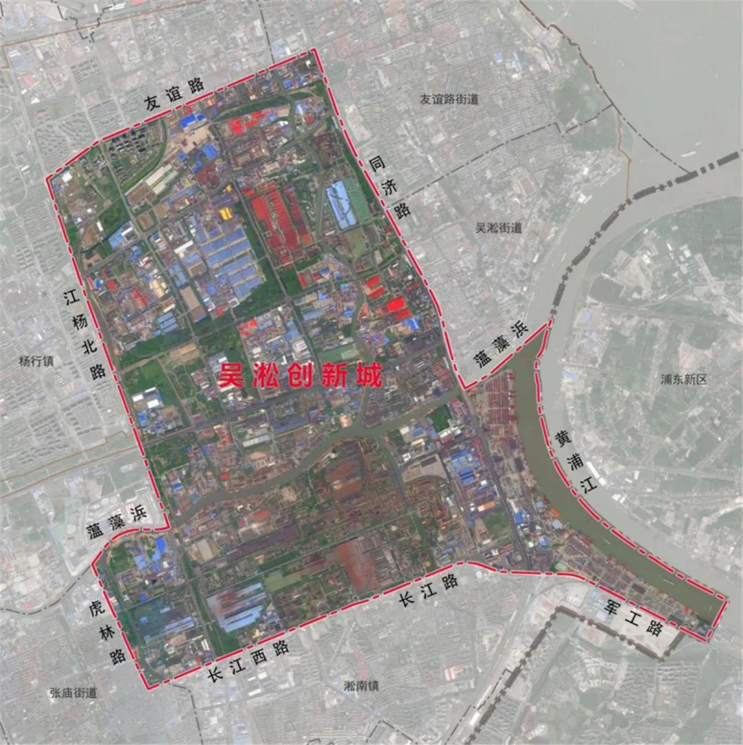 吴淞创新城规划范围即吴淞工业区,北至友谊路、东至同济路-黄浦江、南至长江西路-军工路、西至江杨北路-虎林路,总面积约26平方公里,其中规划建设用地约23平方公里。