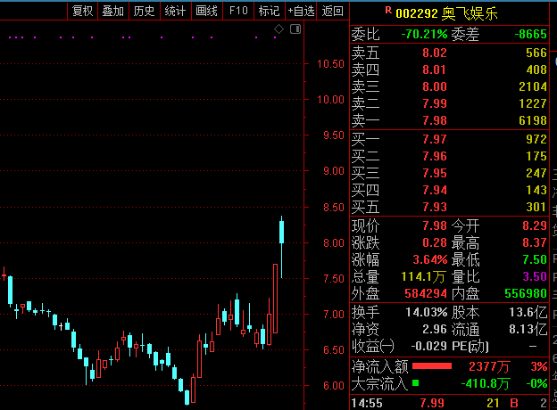 盘面上,6月11日、6月12日、6月15日连续三个交易日,奥飞娱乐收盘价格涨幅偏离值累计超过20%。