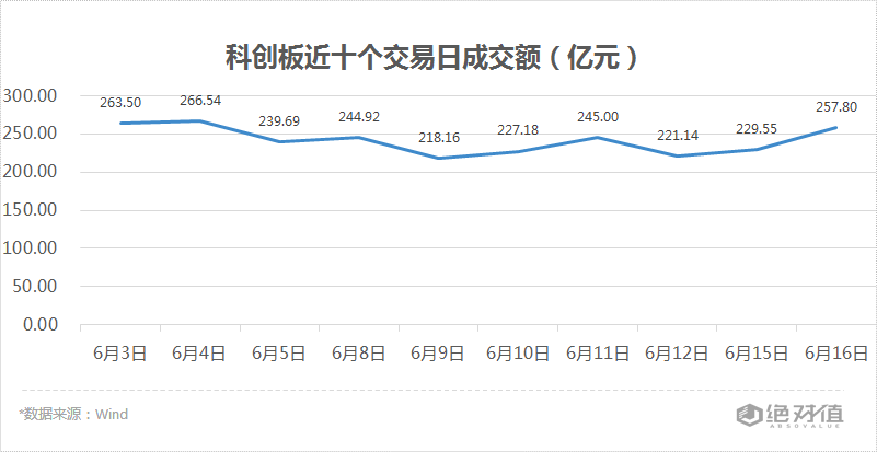 成交额方面,截至收盘,科创板全天成交额为257.80亿元,较上个交易日继续回升。