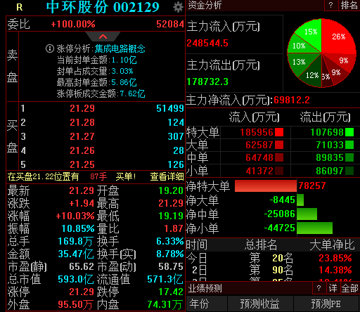 6月22日,中环股份低开高走,午后涨停,报21.29元,股价逼近前期高点。