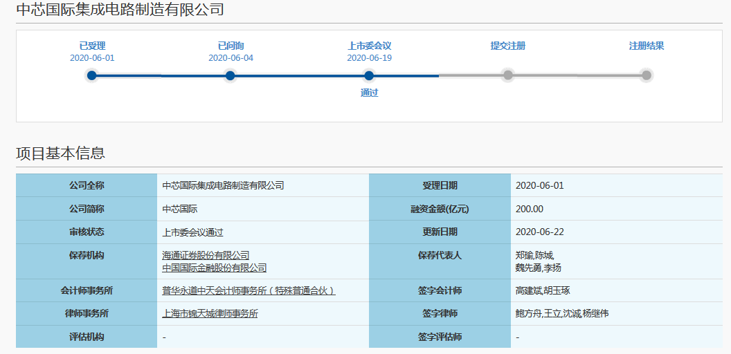 6月22日,中芯国际集成电路制造有限公司获科创板上市委会议通过。