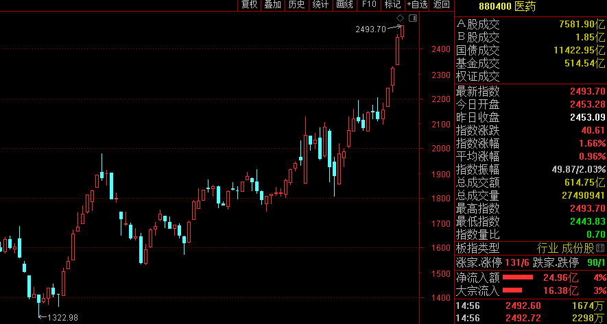 板块指数方面,医药板块指数今日大涨1.66%,距离2015年6月份的历史高点仅一步之遥。板块指数年内已上涨33.38%,超过了去年全年32.47%的涨幅。