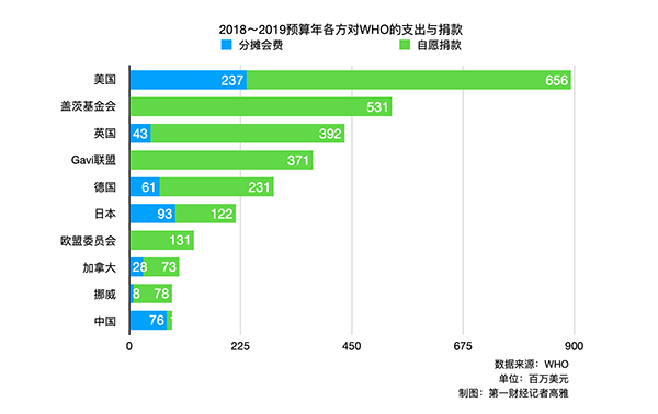 去年,美国向WHO提供的4.5亿美元款项中,约75%属于自愿捐款,其中大部分被用于特定疾病,因此美国“断供”后的绝大部分空缺无法强制由其他WHO成员方弥补。