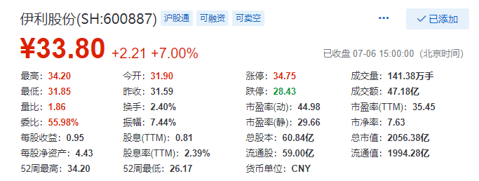 7月6日,在万亿成交量之后,两市终于迎来大阳行情。当日,上证指数涨幅一度超过5%。而食品龙头伊利股份,更是以超过7%的涨幅,强势突破2000亿市值,股价也创历史新高,展现出强劲的上涨势头。眼见牛市狂奔而来,伊利股份的未来走势如何?事实上,不只二级市场持续给出积极回应,过去一个月时间内,众多证券研究机构的研报也纷纷看好伊利股份后市表现。