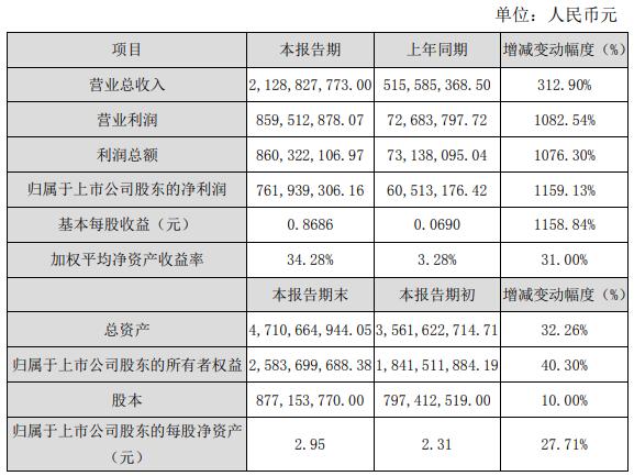 公告显示,报告期末公司财务状况良好,本报告期末总资产较期初增长 32.26%,归属于上市公司股东的所有者权益较期初增长 40.30%,每股净资产较期初增长27.71%。上述指标同比变动的主要原因是:营业收入增加导致的经营积累增加。