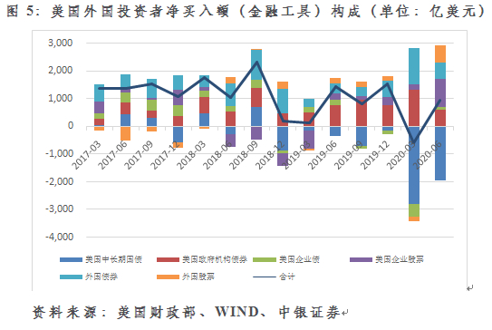 无疑,美债吸引力下降是重要诱因。3月初以来,美联储转入“抗疫”模式,连续两次降息至零,月底宣布无限量宽并不断扩大企业信贷支持和资产购买范围,美债收益率大幅下行。到3月底,2年期和10年期美债收益率均创下2008年金融危机爆发以来的新低,较上年底分别回落了85%和64%;到6月底,前述两个期限的美债收益率较3月底又进一步分别下行了30%和6%。
