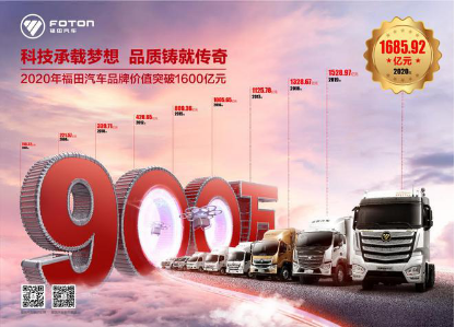 2020年上半年,福田汽车凭借过硬的产品品质、前瞻化的市场布局及优质的服务走出了中国自主品牌不断向上之路,赢得了用户的高度认可,也使得品牌价值继续向上,突破1600亿元,以1685.92亿排行第34位,连续16年位居商用车行业前茅、汽车行业第四。