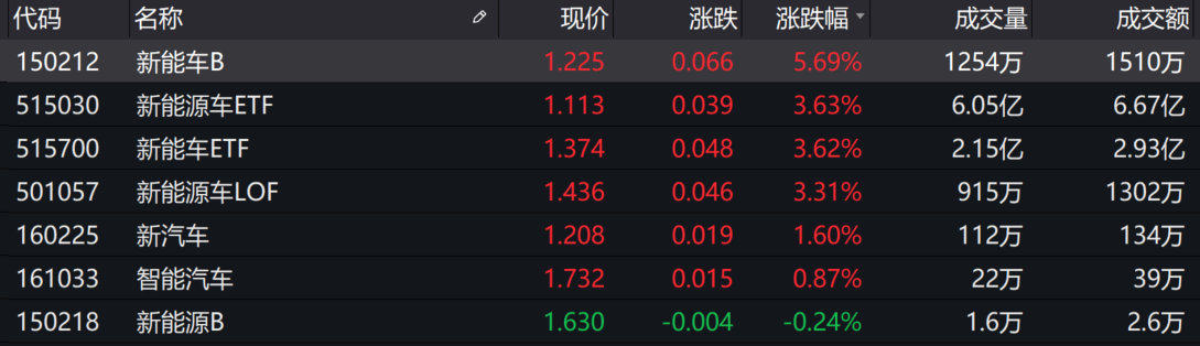 受特斯拉股价再创新高影响,A股特斯拉概念股持续发力,汽车整车板块也有所表现,申万汽车行业涨幅为2.98%。场内新能源汽车主题基金涨跌互现,其中,新能车B(150212.SZ)涨幅超过5%,新能源车ETF、新能车ETF等涨幅超过3%。