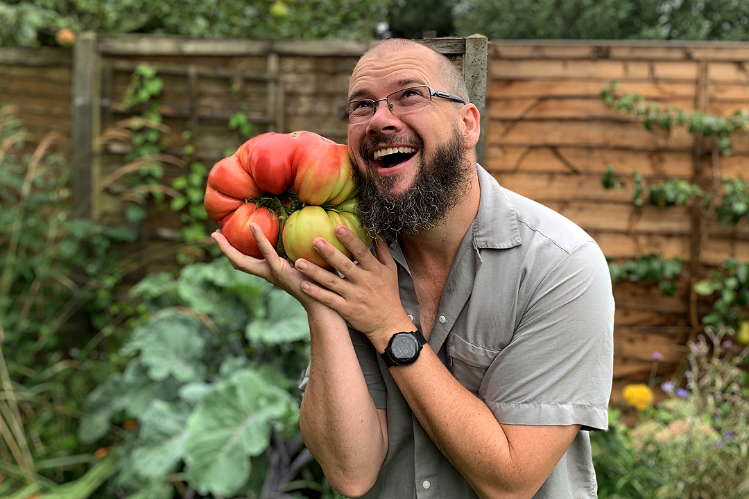 【当地时间9月1日,英国】42岁的Douglas Smith花费2个月时间,精心培育出了一个超过3公斤重的巨型西红柿,打破了英国最大西红柿纪录。