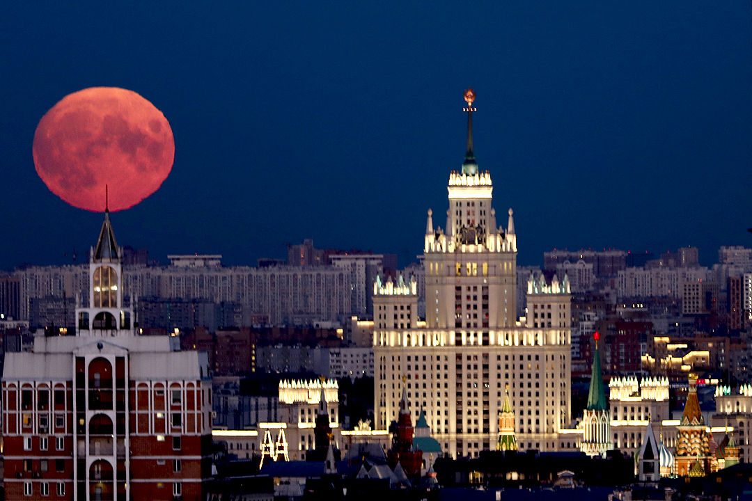 【当地时间9月1日,俄罗斯莫斯科】红场上空的满月现身天宇,景色迷人。