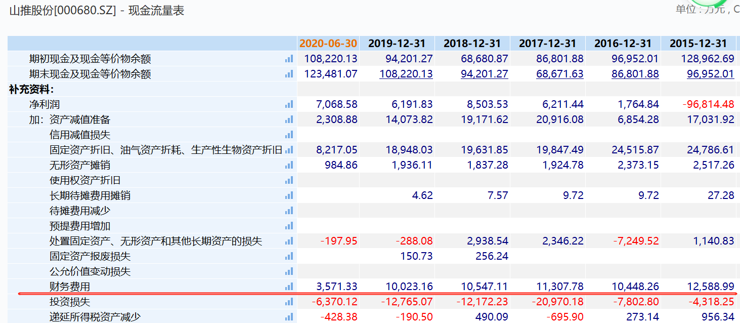 应付票据,尤其是山推股份的应付票据,主要是商业银行承兑汇票,相当于向银行借钱,而这些汇票的开出,也是需要成本的。账面近20亿的应付票据余额,成本也不小。多年来,山推股份因筹资产生的财务费用,都高于公司辛苦经营形成的利润总额。(如下图所示)