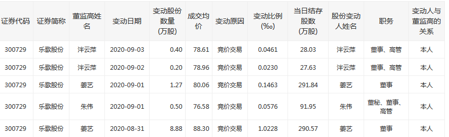 据深交所披露的数据显示,本周(8月31日至9月3日)乐歌股份三名高管姜艺、朱伟、泮云萍出手增持,合计增持数量11.25万股,估算合计耗资971万元。
