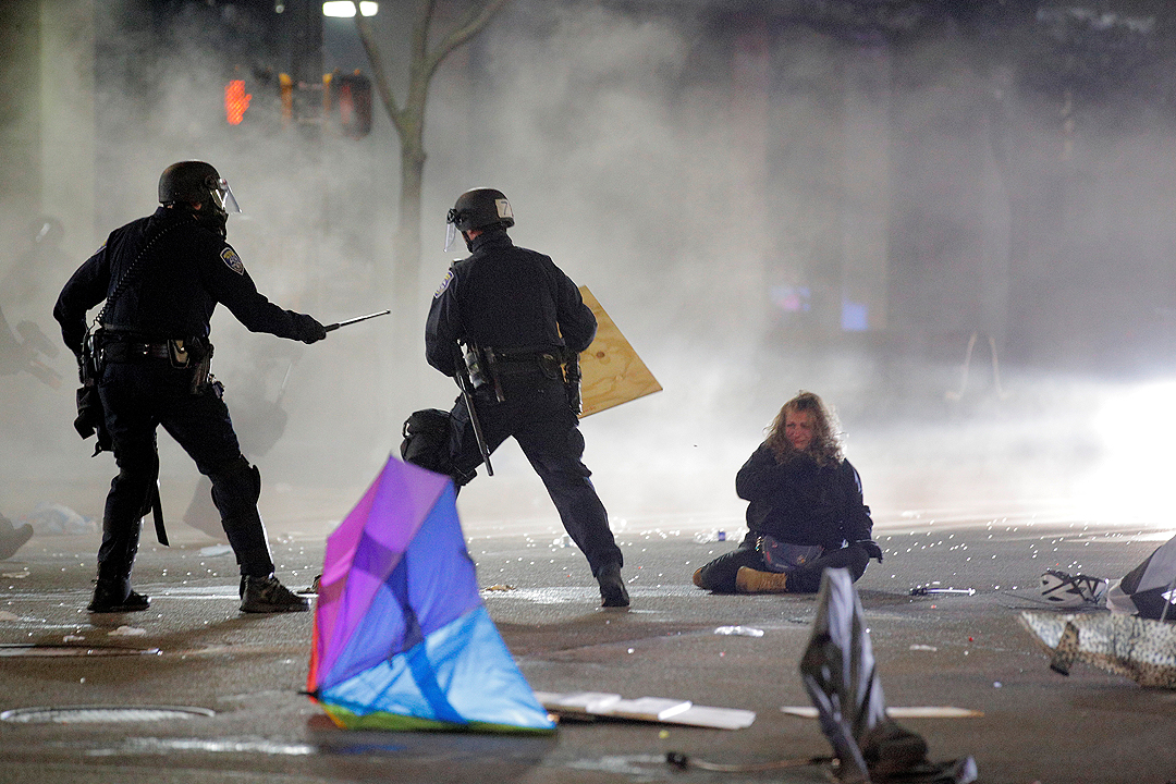 【当地时间9月5日,美国纽约州罗切斯特市】游行示威进入第三个晚上。当晚游行期间有抗议者遭到车辆撞击,也有警方人员在执法过程中受伤、公共设施被点燃等事件。