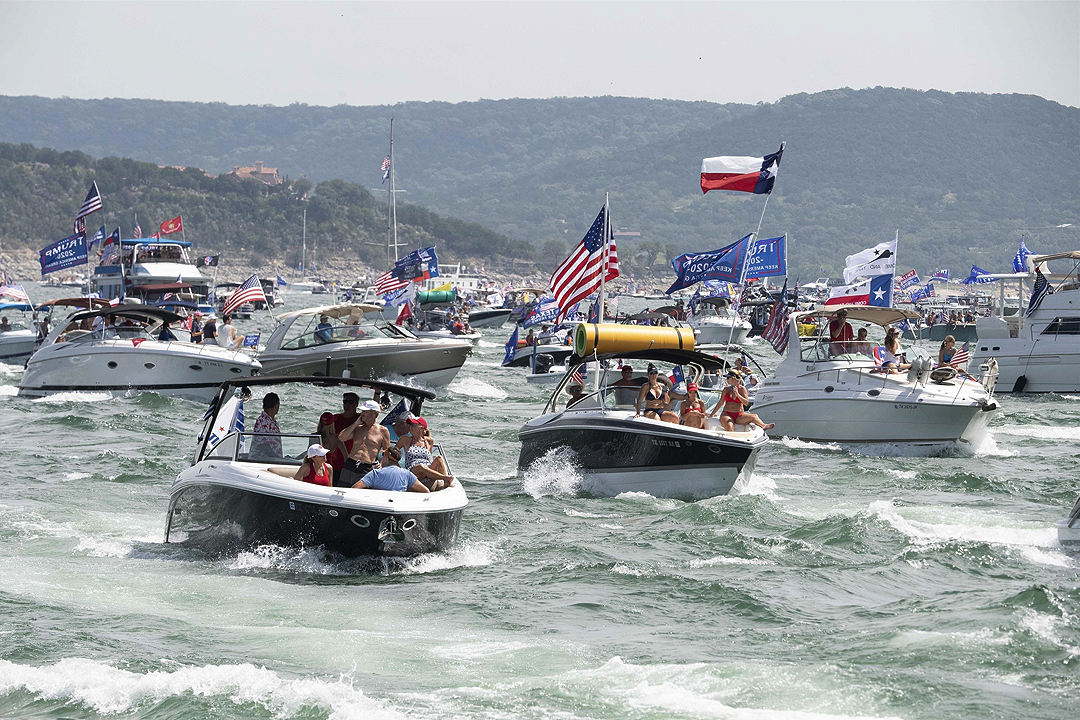 【当地时间9月5日,美国得克萨斯州奥斯丁市】特拉维斯湖上举行了一场“支持特朗普”游船活动,几艘船只突发意外沉没。