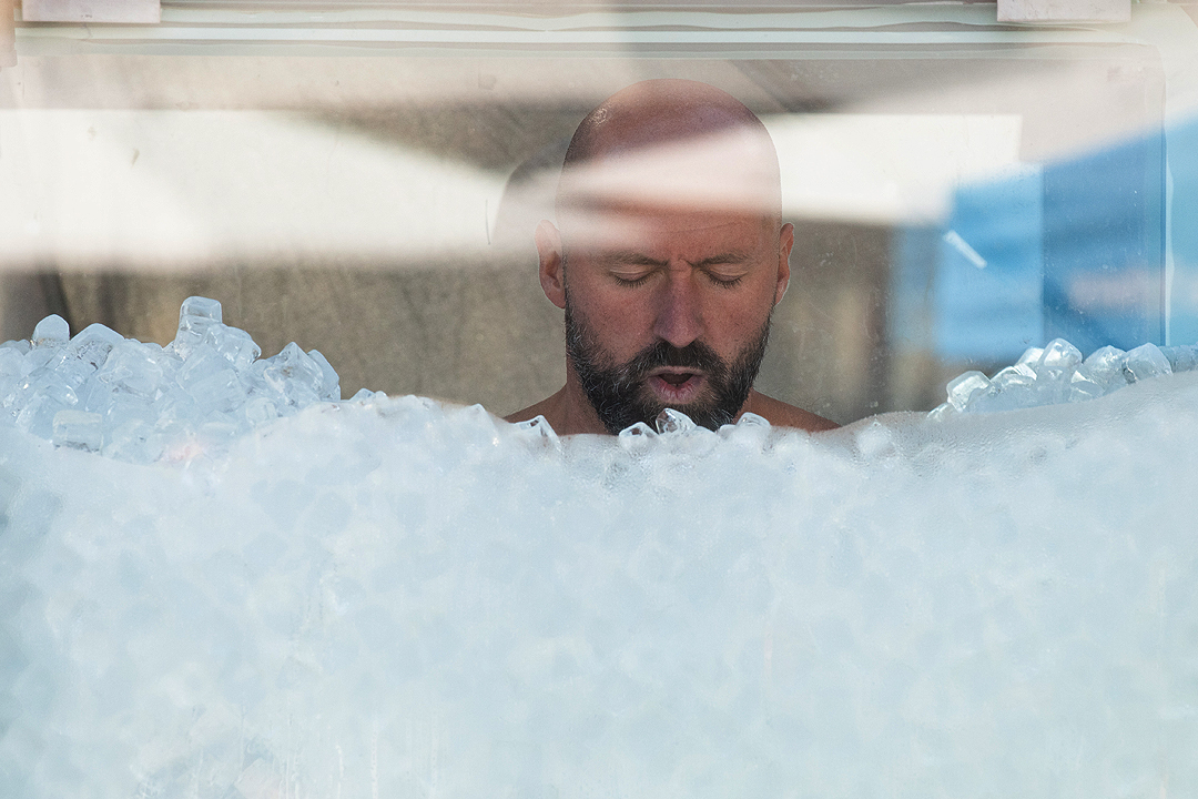 【当地时间9月5日,奥地利梅尔克】奥地利男子全身浸在冰里坚持2小时30分53秒或打破之前2小时8分钟47秒的纪录,该活动旨在提高人们对极地冰川融化的认识。