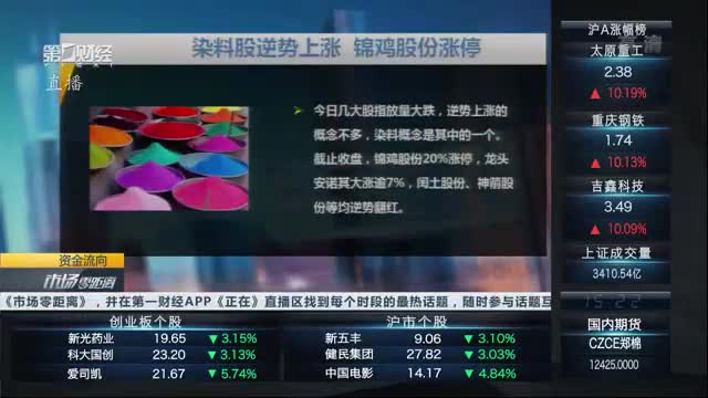 今日几大股指放量大跌,逆势上涨的概念不多,染料概念是其中的一个。截止收盘,锦鸡股份20%涨停,龙头安诺其大涨逾7%,闰土股份、双箭股份等均逆势翻红。9月7日活性染料价格大幅上涨。其中,活性黑WNN价格从20元/公斤涨至23元/公斤,上涨幅度高达15%,7月反弹以来累计上涨28%。