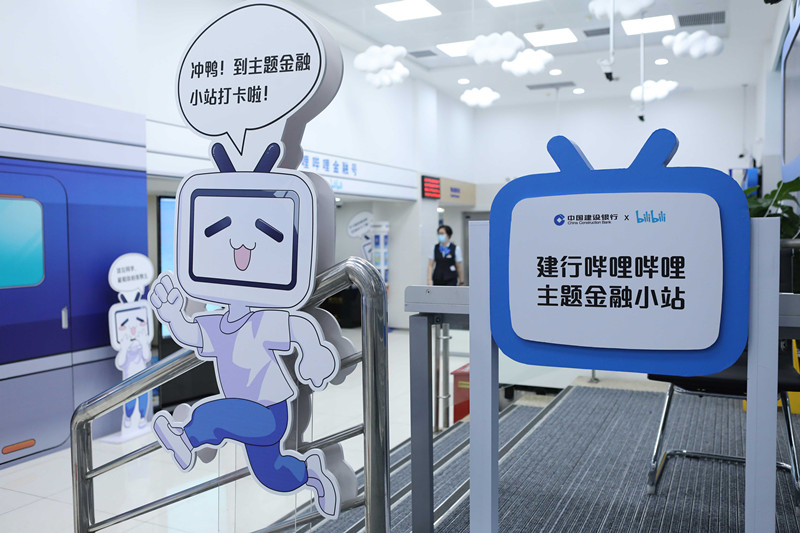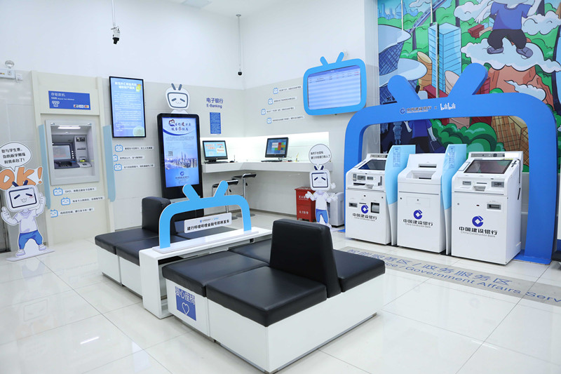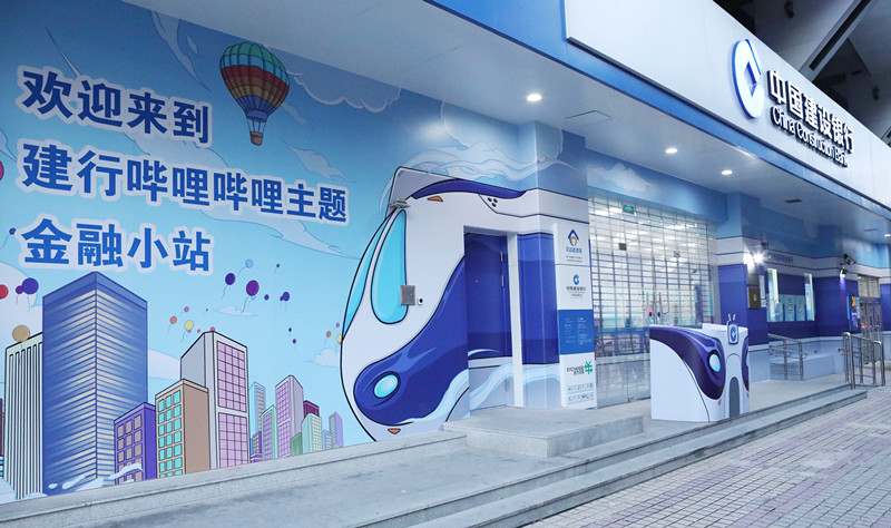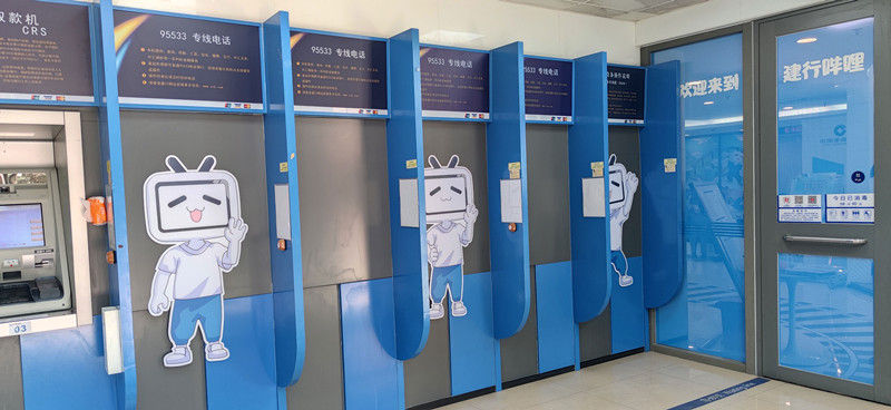 9月10日,上海复旦大学旁的国定路上,建设银行的一家网点“如常”开门营业,只是这次,一切似乎都有点不一样:“欢迎来到建行哔哩哔哩主题金融小站!”亮丽青春的超大列车墙贴装饰了整个网点门面,B站主题小电视形象笑盈盈地向你招手。走进网点,无论是智慧柜员机还是业务柜台旁,可爱的小电视抱枕,互动的电视弹幕,种种“沉浸式体验”都让“有趣”这件事,变成了看得见、摸得着的可视化元素。与此同时,在北京,建设银行位于北京外国语大学的网点,也正以同样焕然一新的“二次元”面貌开门迎客中。