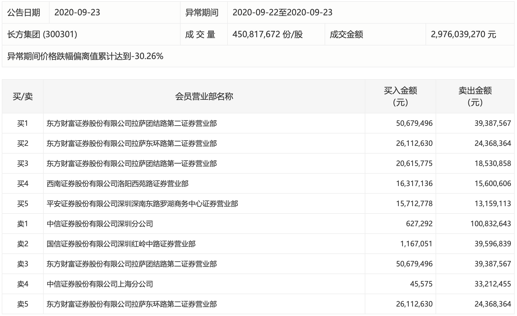 而长方集团今日大跌超9%,盘后数据显示,买入前三席位均为东方财富营业部,买一席位东方财富证券拉萨团结路第二证券营业部买入5067万元并卖出3938万元。