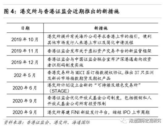 正如我们在上一份有关香港经济的报告(《逆水行舟》,2020年9月1日)中所指出,香港社会各界人士一直在寻找新的增长机遇以维持香港作为国际金融中心的竞争力。除了致力将香港建设成全球性的ESG( 环境、社会和公司治理)投资枢纽和金融科技中心外,香港证监会和港交所在过去一年中也在努力创建一个更具包容性和创新性的市场环境,来吸引潜在发行人和投资者(图4)。香港拥有普通法司法体系、低税率和简单税制,以及可自由兑换的货币等独特优势,相信有能力应对上述各方面的挑战。