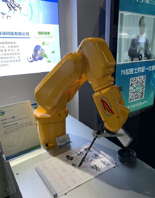 展示馆工作人员介绍,这台机器人由芜湖埃夫特公司制造,通过毛笔字书法体现柔性系统和精准定位,机器人的关节部位、腰部分别使用了不同规格的减速器,以往这些减速器都依赖从日本进口,现在可以自主生产,市场占有率超过50%,国产减速器也让机器人制造成本压缩了近30%。