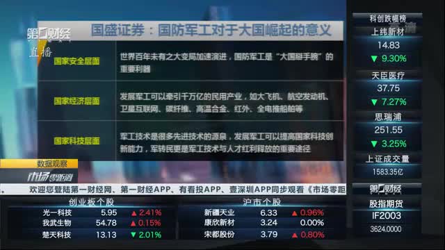 在潜在政策利好预期的作用下,今日国防军工板块全线走强,板块指数放量高开高走,大涨近3%,半日成交接近昨日全天成交。细分行业航空、船舶、卫星导航、无人机等板块纷纷放量走强。晨曦航空、中船应急20%涨停,振华科技、春兴精工等也强势涨停,新晨科技、捷强装备、江龙船艇等涨幅超10%。
