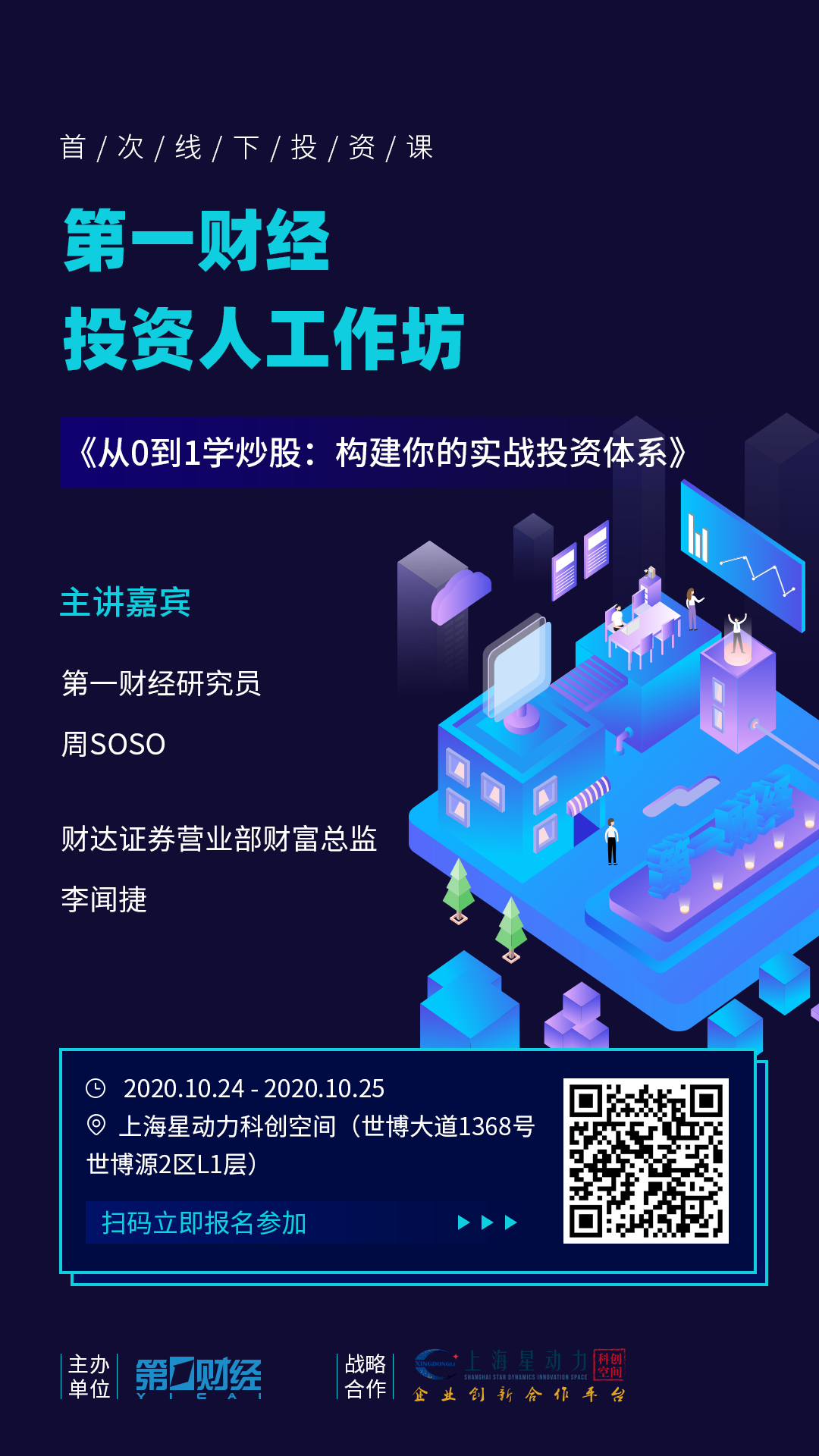 10月24日-25日,坐标上海星动力科创空间,第一财经研究员、财达证券营业部财富总监将联手奉上两天的精彩课程。