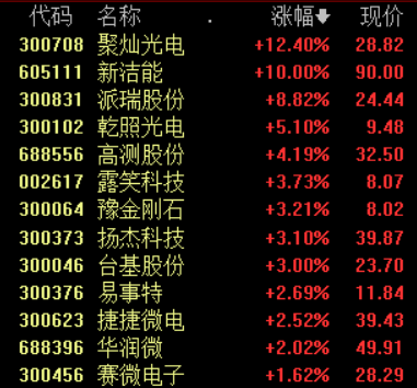 10月22日,第三代半导体等题材表现活跃,截至发稿,聚灿光电、新洁能、派瑞股份、乾照光电、高测股份等多股走强。