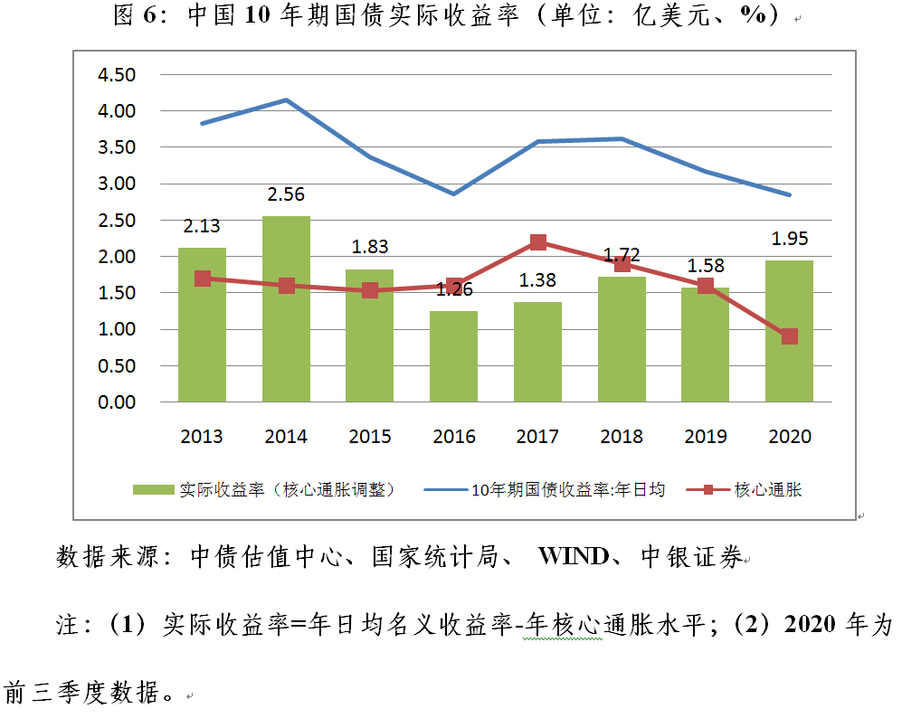 首先,这是支持财政政策更加积极有为的需要。鉴于新冠肺炎疫情尚未结束,影响依然存在,造成的损失特别是中长期损失巨大,最近国际经济组织均一再呼吁不要过早撤销宏观政策尤其是财政政策对经济复苏的支持。因此,未来一个时期,中国财政政策仍有必要继续积极有为,中央和地方政府债务融资将存在较大需求。引导债券市场利率走低,有助于降低政府融资成本,提高政府债务可持续性。而以核心通胀调整的10年期国债实际收益率,今年前三季度达到1.95%,为2015年以来最高,也显示当前国债收益率有下调空间。