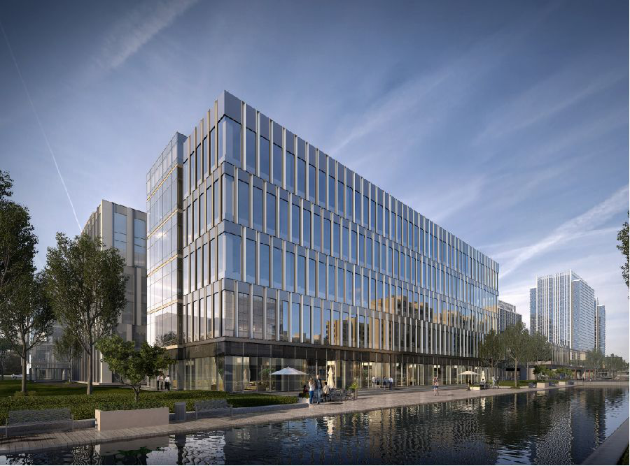 滨水独栋总部产品,为低密度办公群落,单体面积逾5000㎡,依傍蟠龙港天然水系,拥有遗世独立的生态环境,可以在繁华核心体验到江南水乡的韵味。