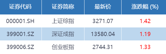 三大指数涨幅均超过1%,有色金属、国防军工、第三代半导体等板块涨幅在前。