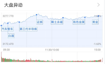 11月3日,三大指数高开,开盘后,两市表现略有分化,沪指整体走高,创业板指、深成指小幅回调。随后,三大指数持续拉升走高,截至收盘,三大指数涨幅均超过1%。盘面上来看,行业板块普涨,有色金属、国防军工、第三代半导体等板块表现较为强势,汽车、家电等板块表现较弱。