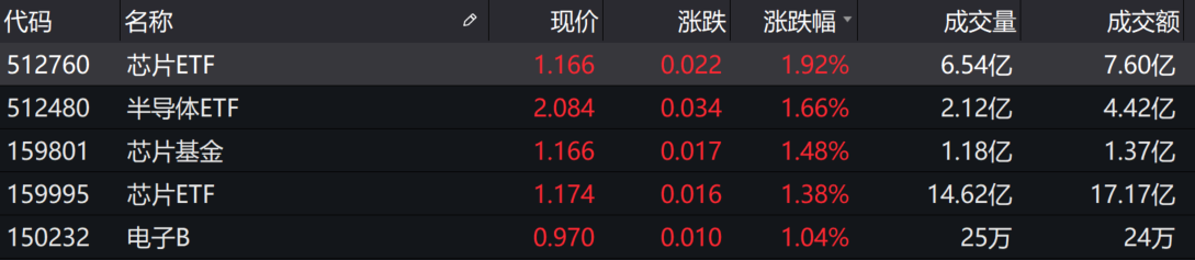 除此之外,第三代半导体板块同样表现涨幅居前,Wind第三代半导体指数涨幅超过5%,聚灿光电(300708.SZ)涨停。场内相关主题基金涨幅均超过1%。