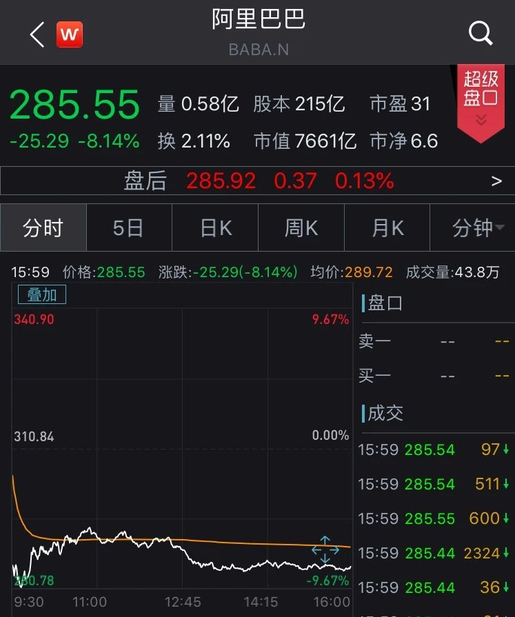 受此影响,美股阿里巴巴收盘跌8.14%。