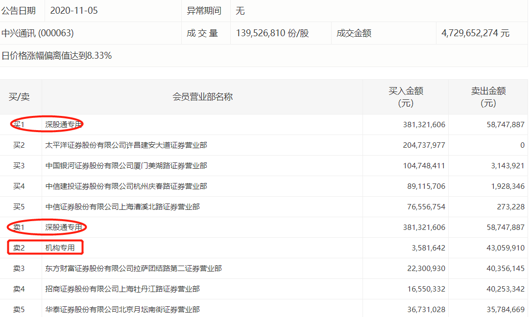 11月5日,中兴通讯放量涨停,收报34.80元,涨幅为9.99%,换手率4.01%,成交额47.30亿元。盘后数据显示,深股通净买入3.23亿元,太平洋证券许昌建安大道买入2.05亿元,一机构卖出4305万元。港股市场上,中兴通讯涨超18%,收报20.7港元。