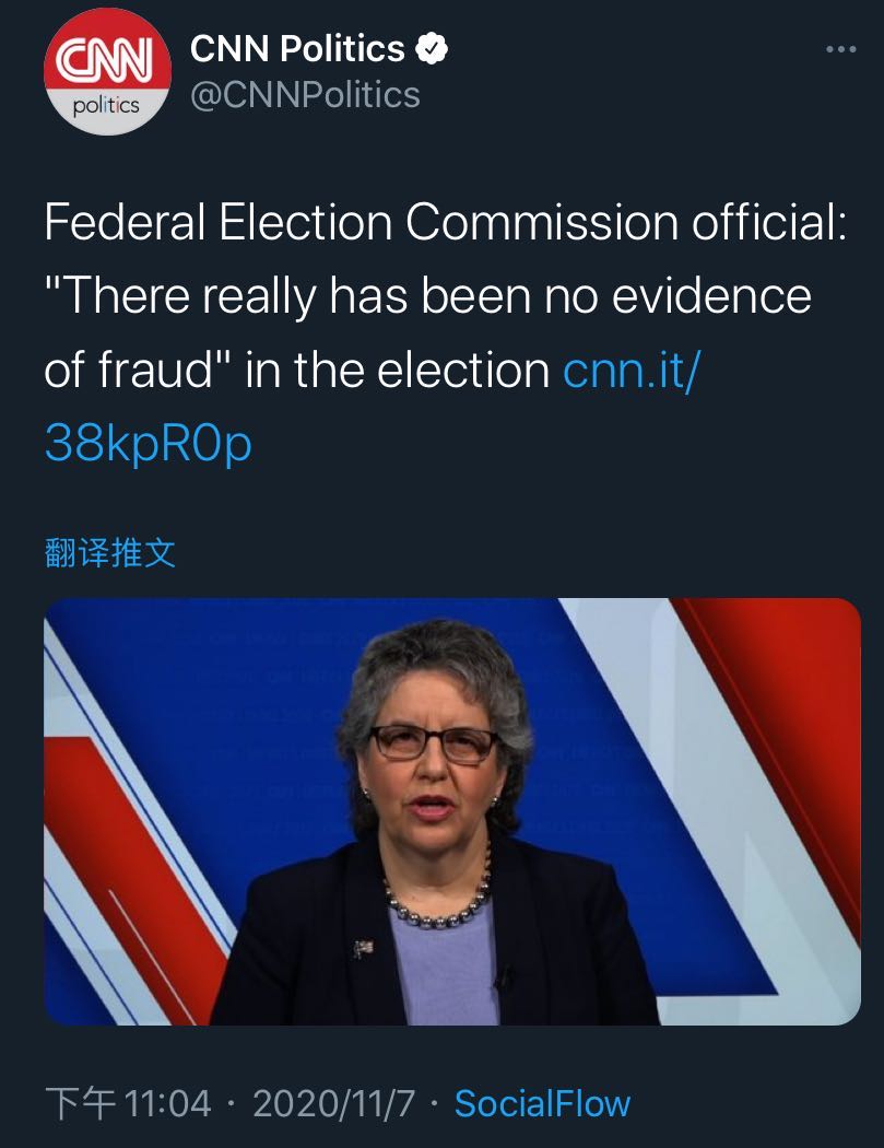 据CNN消息,美国联邦选举委员会主席艾伦·温特劳布(Ellen Weintraub)针对特朗普有关选举投票存在“舞弊行为”的说法予以回应,称希望美国人知道,在今年的选举中“确实没有任何舞弊的证据”。