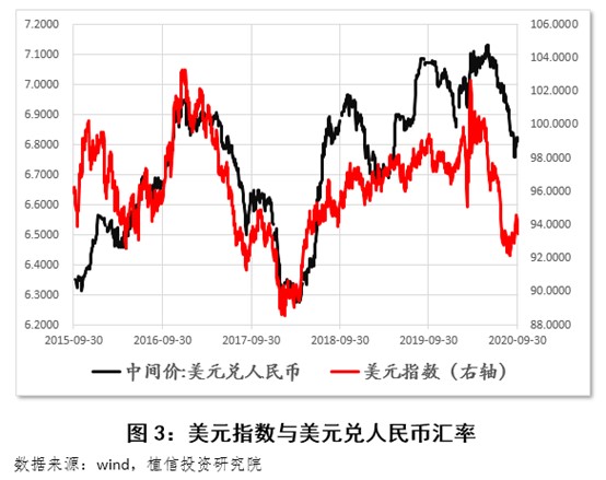 显然,实际有效汇率这一轮的上升背离了经济基本面,存在着相当大程度的高估。这一高估的主要原因很有可能是全球经济在面对较多不确定性时的迷惘反应。随着疫情、美国大选等不确定性的逐渐淡去,原本为逃避风险而选择美元资产的需求就有可能出现反转,美元高估的形态就可能出现相应的回归。