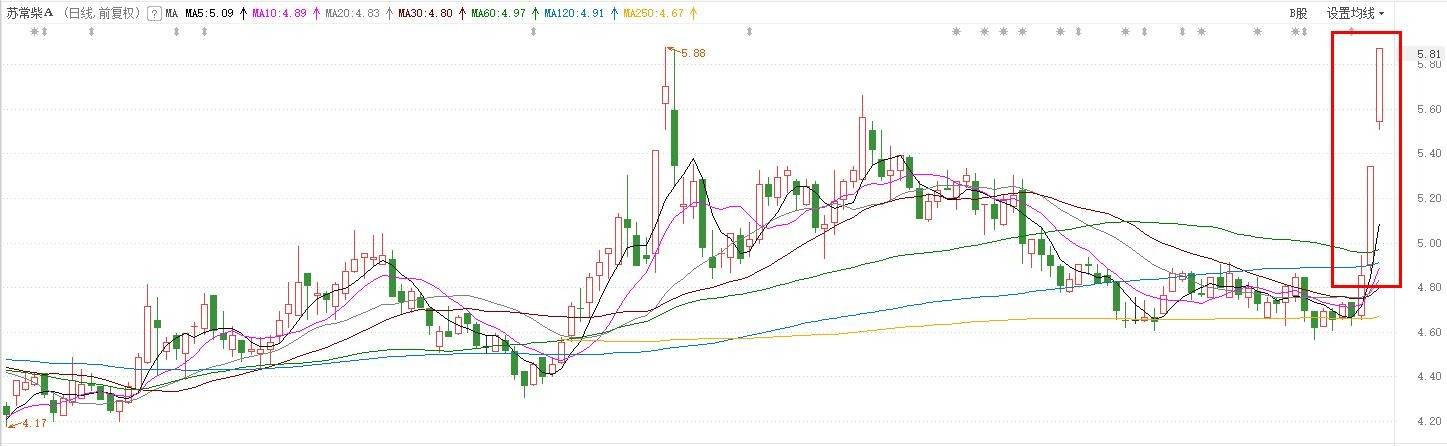 11月11日,苏常柴A(000570.SZ)涨停,收报5.87元/股,成交额1.47亿元,换手率6.18%,已经连续两个交易日涨停。