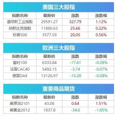 截至收盘,道指上涨327.80点,涨幅1.12%,报29591.27点;标普500指数上涨20.10点,涨幅0.56%,报3577.60点;纳指上涨25.70点,涨幅0.22%,报11880.63点。道指本月迄今上涨了10%,标普500指数本月上涨了8%。