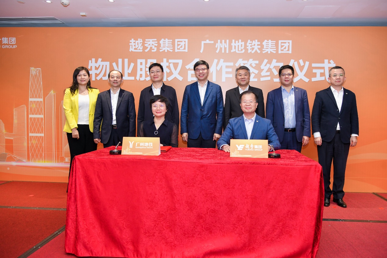 越秀地产董事长林昭远、广州地铁集团总会计师王苹代表双方签署合作协议。广州市国资委主任陈浩钿,广东省物业管理行业协会当值会长杨国贤,越秀集团董事长张招兴,广州地铁集团总经理刘智成等领导嘉宾出席并见证签约仪式。