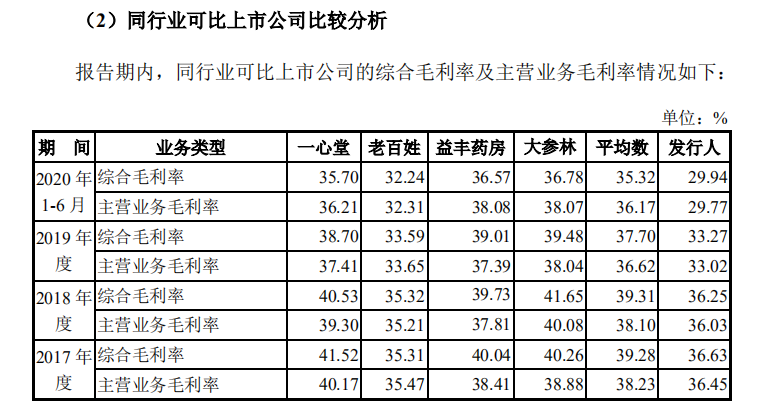 漱玉平民也表示,根据历史收入数据分析,报告期内销售规模低于同行业可比上市公司,较低的收入规模导致整体采购议价能力较弱。另外,“受阿胶等补益类药品市场需求下降、厂商清理渠道库存等影响,补益类药品销售采取低价促销、加大推广力度等营销策略,增加了销售额,降低了毛利率,最终导致中西成药毛利率下降。”