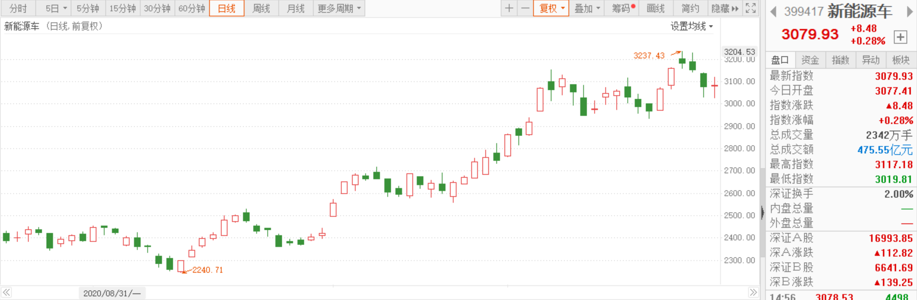 (新能源车板块走势图,图片来源:东方财富)