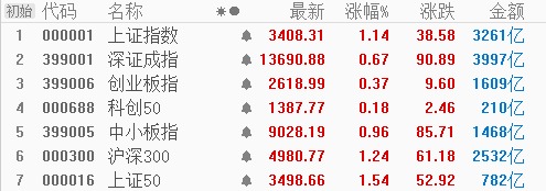 (主要指数表现,图片来源:东方财富)