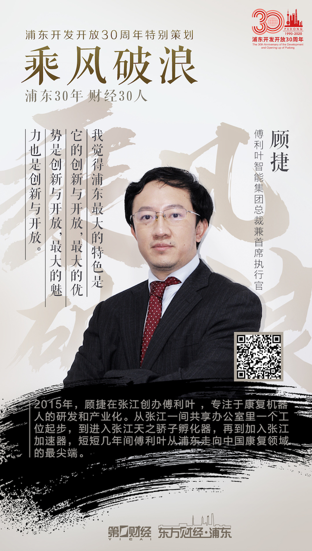 顾捷,傅利叶智能集团总裁兼首席执行官,毕业于上海交通大学,从事机器人领域十余年。2015年在上海张江创办傅利叶,专注于康复机器人的研发和产业化,服务医院、社区和康复家庭。从张江一间共享办公室里一个工位起步,到进入张江天之骄子孵化器,再到加入张江加速器,傅利叶的成长速度令人惊叹,短短几年间从浦东走向中国康复领域的最尖端,研发的机器人已经获得美国、欧盟等国际认证。如今,公司已在新加坡、马来西亚、广州、珠海成立子公司,康复机器人产品入驻全球20多个国家和超千家机构,形成基于智能康复机器人为核心的“智能康复港”一体化精准康复医疗服务平台,为康复领域提供综合性解决方案。