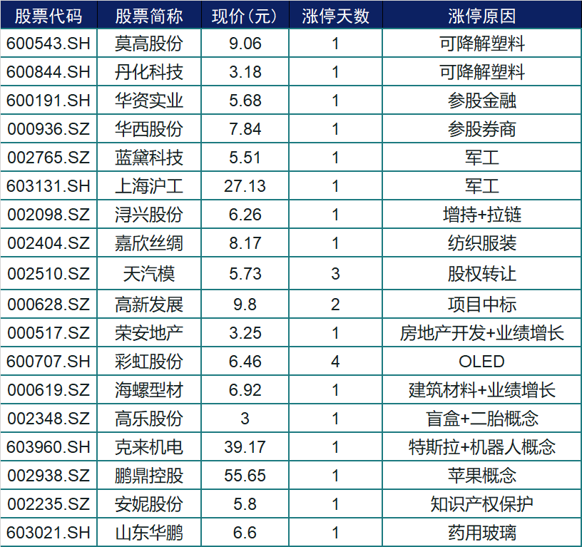 可降解塑料概念板块拉升 “限塑”加速,行业渗透率有望提升,莫高股份、丹化科技均是此类题材。