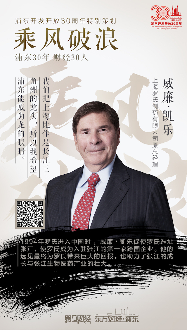 威廉•凯乐,1994年-2002年出任罗氏(中国)和上海罗氏制药有限公司总经理。1994年罗氏进入中国时,他促使罗氏选址张江,使罗氏成为入驻张江的第一家跨国企业,他的远见最终为罗氏带来巨大的回报。威廉•凯乐坚定信任浦东和张江,始终向朋友推介张江,从罗氏退休后的威廉·凯乐,继续在张江担任顾问,为张江建设出谋划策,并帮助上海吸引更多跨国研发机构进驻。他助力了张江的成长与张江生物医药产业的壮大。