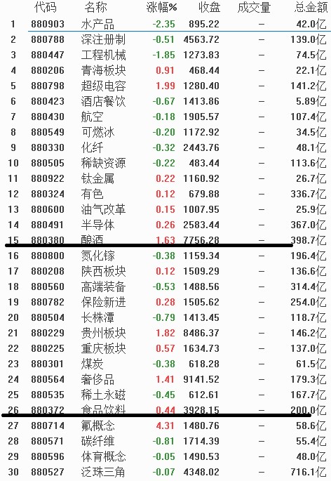从板块统计来看,前30名中酿酒食品饮料2个板块由于已经连续3天强势,今天开始首次上榜前30强,尤其是酿酒板块有会快速进入前5名之势,因为目前的确没有其他板块可以和他们竞争,因为都是老面孔,食品饮料板块是9月中秋节之后首次上榜的。