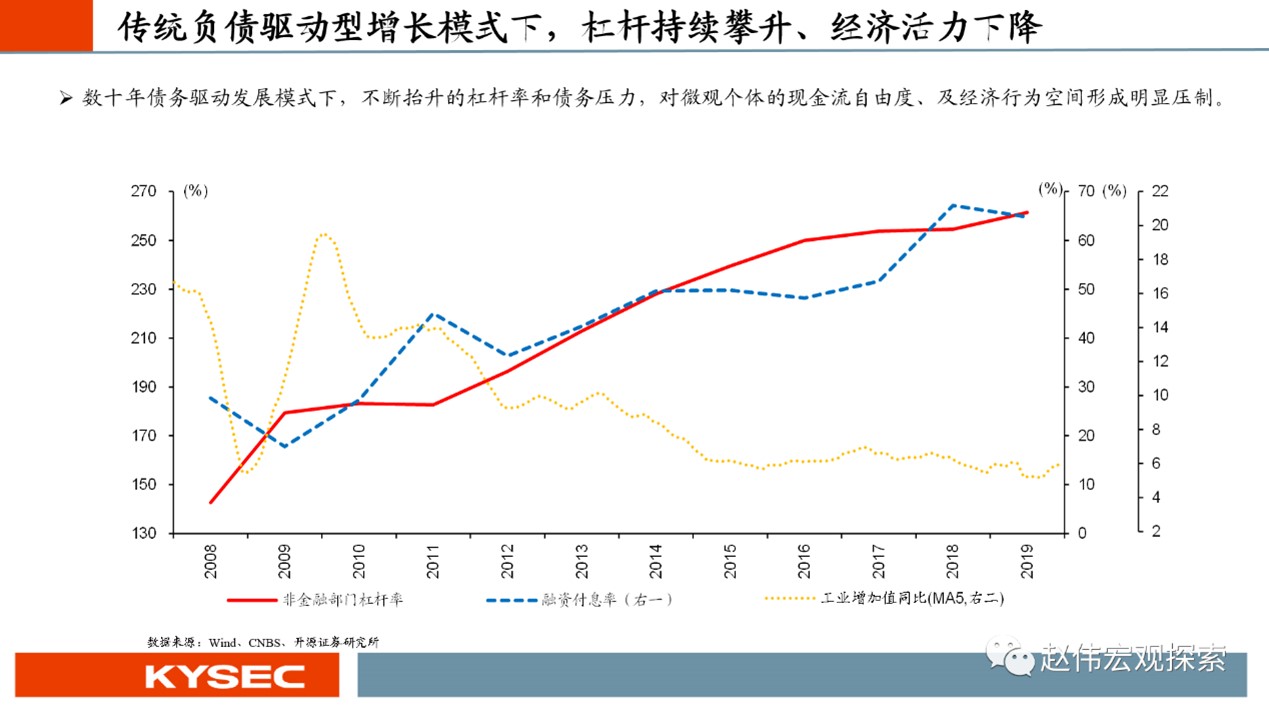 以前杠杆较低、债务负担不大,负债驱动型增长模式效率非常高。随着杠杆的不断抬升,债务对微观个体的现金流自由度、及经济行为空间形成明显压制。