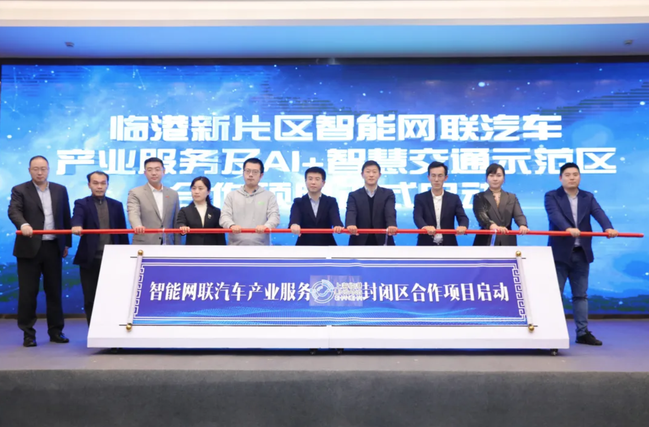 活动现场举行了临港新片区“AI+智慧交通综合测试示范基地”项目合作生态伙伴共建启动仪式,园区开发主体上海临港科技创新城经济发展有限公司,联合技术支撑单位上海临港智能网联汽车研究中心有限公司,与近10家来自于交通、汽车、通信、信息安全等领域的企业将共同参与项目建设、运营及后续入驻测试等。未来,临港新片区将进一步发挥制度创新及政策优势,搭建好产业服务平台,助力智能网联汽车产业集聚与发展。