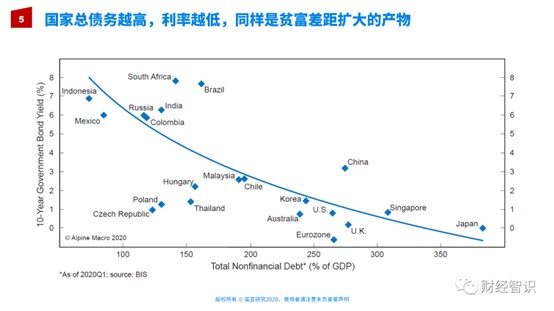 相反,很多欠发达国家或者是一些新兴市场、发展中国家,它们整体的债务很低,但是它们的利率却非常高。当然我们可以讲资金在发达国家更多,在发展中国家更少,所以有利率上的差别。